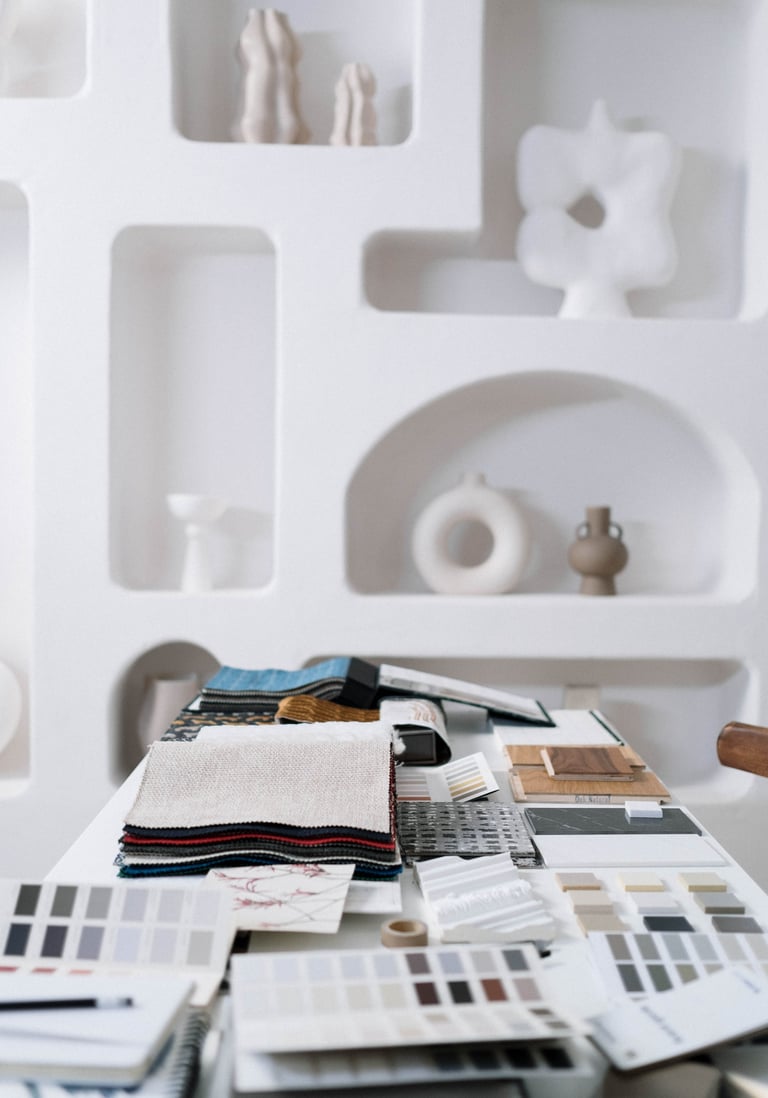 Parinksime sienų spalvas, grindų dangą, plyteles, šviestuvus, santechniką, baldų ir vidaus durų medžiagas ir spalvas, minkštus baldus, užuolaidas ir kitokias detales tokias kaip kilimai, rankenėlės, veidrodžiai, jungtukai.